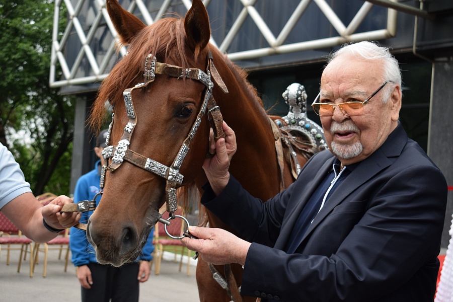 «Қазақфильмде» Асанәлі Әшімовті мерейтойымен құттықтап, тұлпар мінгізді