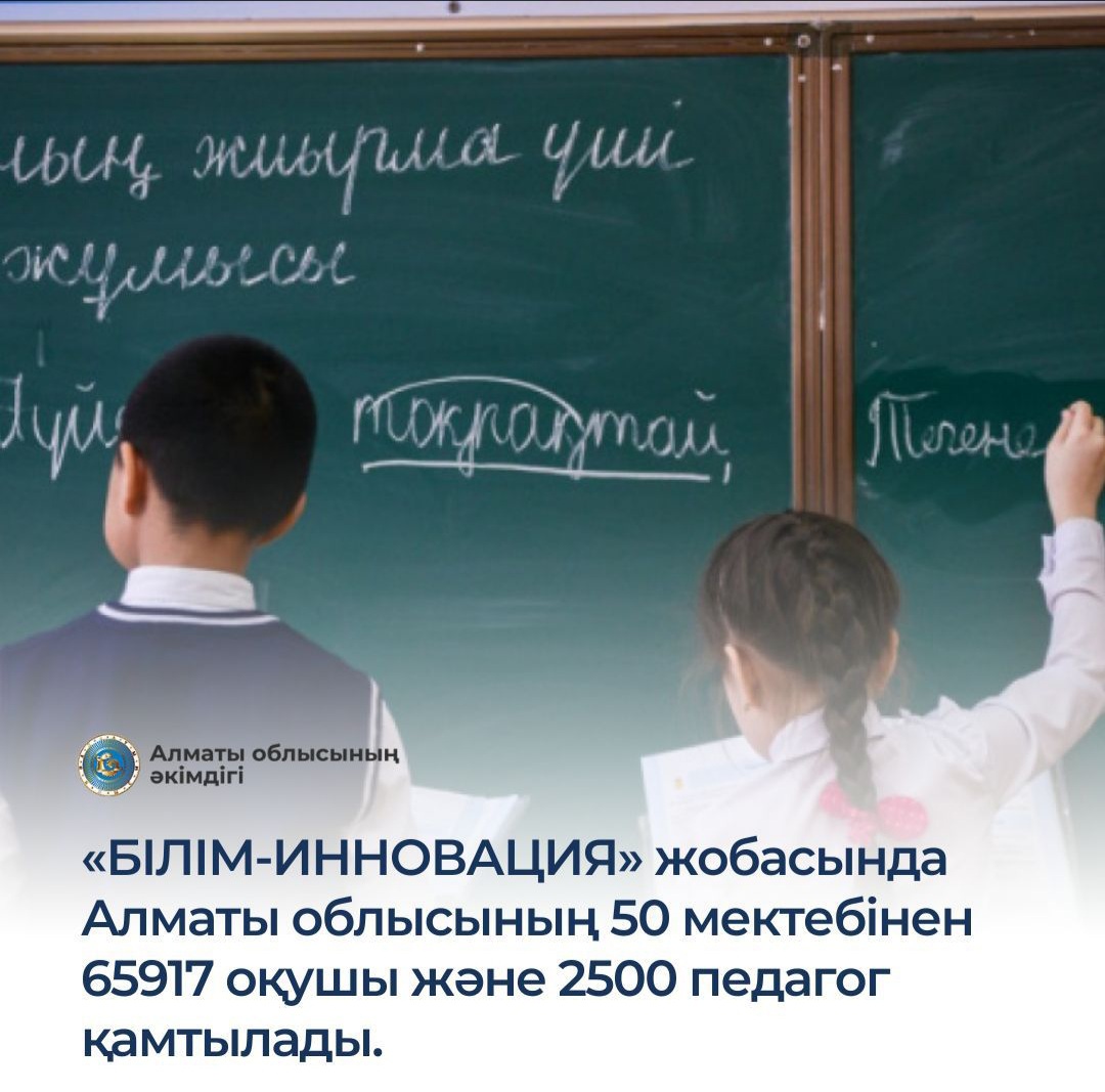 «БІЛІМ-ИННОВАЦИЯ» жобасында Алматы облысының 50 мектебінен 65917 оқушы және 2500 педагог  қамтылады.