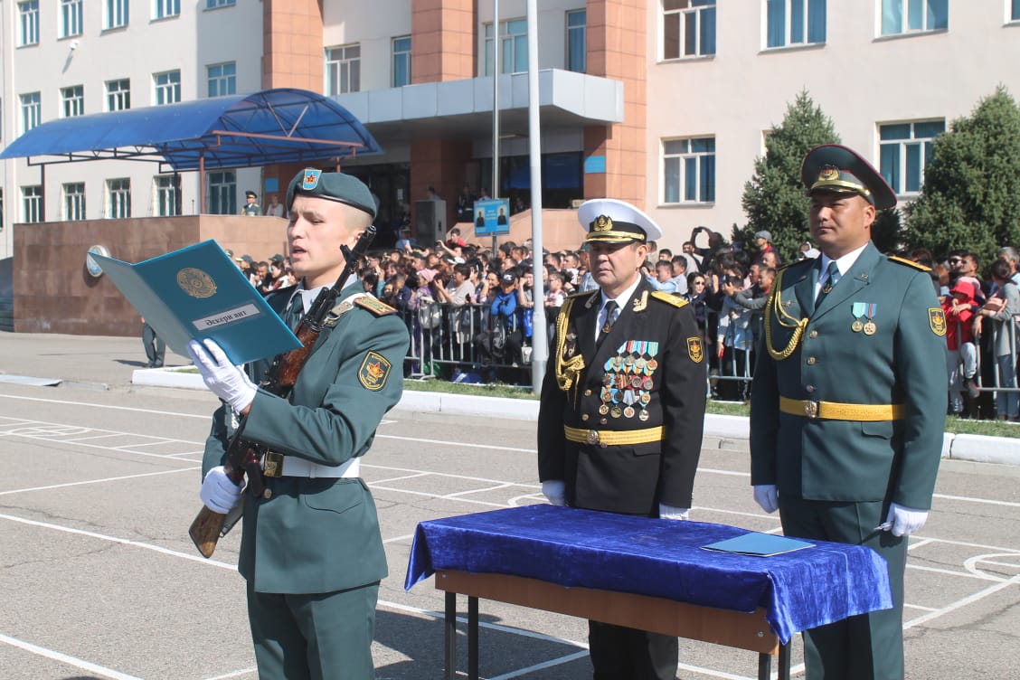 Институттың саптық алаңында болашақ офицерлер бірінен кейін бірі Отан алдында өздеріне жүктелген міндеттерді мінсіз орындауға, қиыншылықтарды табандылықпен көтеруге, әскери істі оқып үйренуге ант етті.