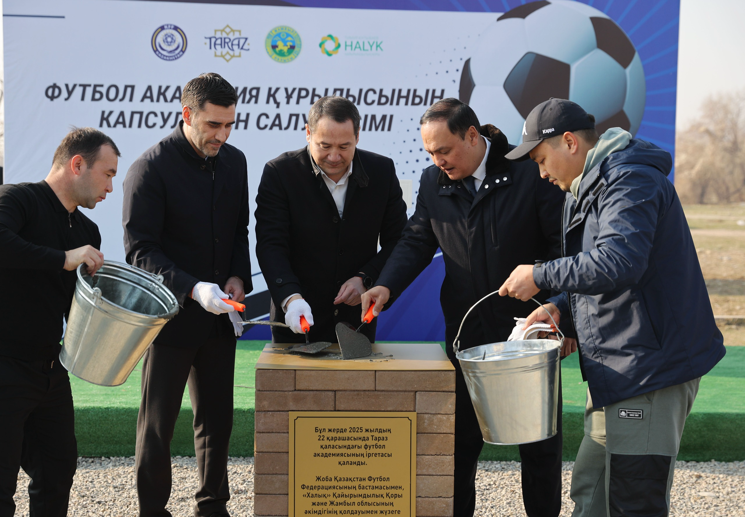 Жамбыл облысының әкімі Ербол Қарашөкеев  жаңа футбол академиясының іргетасына капсула салу рәсіміне қатысып, бұл жобаның өңір спорты үшін маңызын атап өтті.