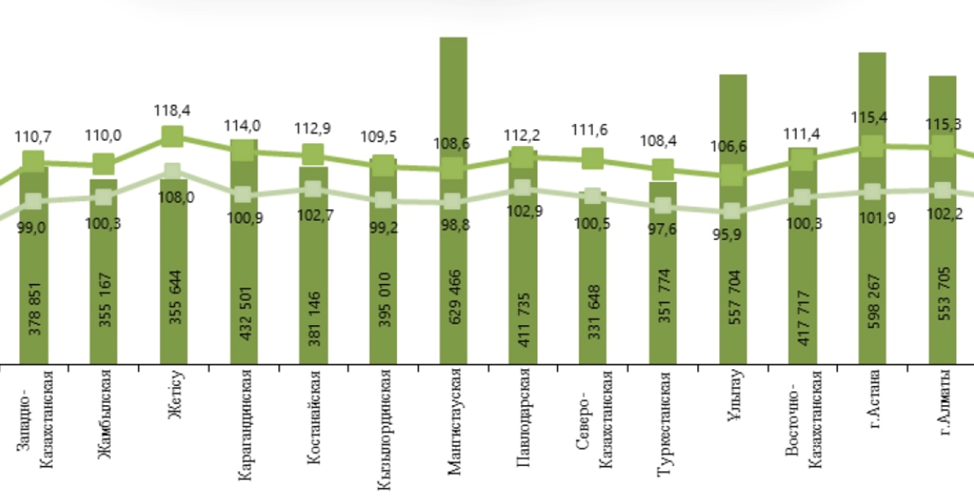 Ресми деректерге сүйенсек, Алматы мен Астана сынды мегаполистерде жалақы 600 мыңға дейін жетсе, халқы аз қамтылған Жамбыл мен Жетісу секілді аймақтарда айлық табыс небәрі 355 мың теңгені құрайды. Ал ауылдарда мүлде аз. 100 мың жалақыға да арзан жұмыс күші табылады.