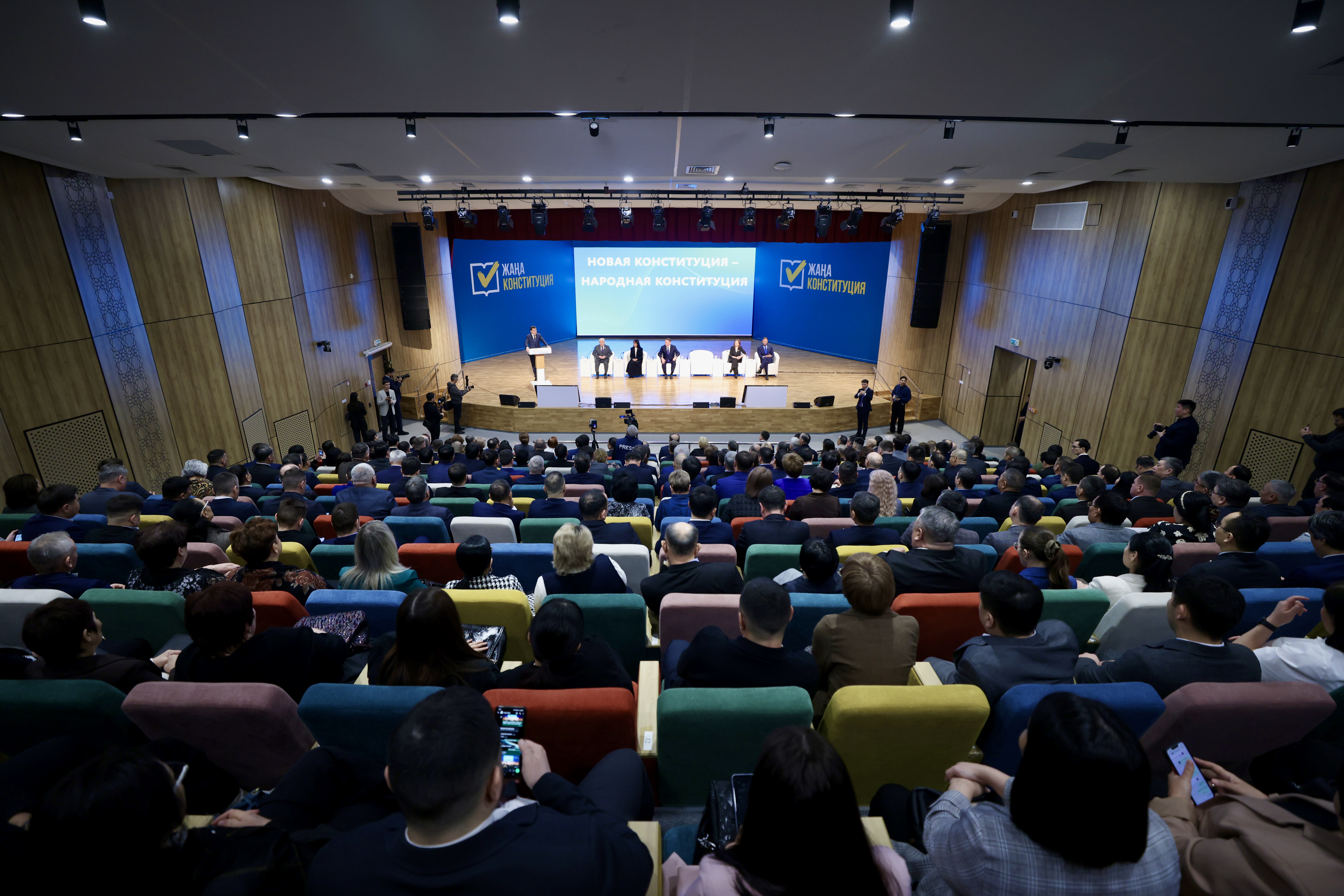 Мемлекеттік кеңесші Ерлан Қарин Конституция жобасын әзірлеу барысына жан-жақты тоқталды. Оның айтуынша, референдум Жаңа Конституция жобасын жарты жылдан астам уақыт бойы кең көлемде қоғамдық талқылаудың заңды қорытындысына айналады. Жаңа Ата Заң мемлекет пен қоғамның өзара тиімді іс-қимылына негізделген мемлекеттік-саяси құрылыстың заманауи әрі серпінді моделіне түбегейлі көшуді білдіреді.