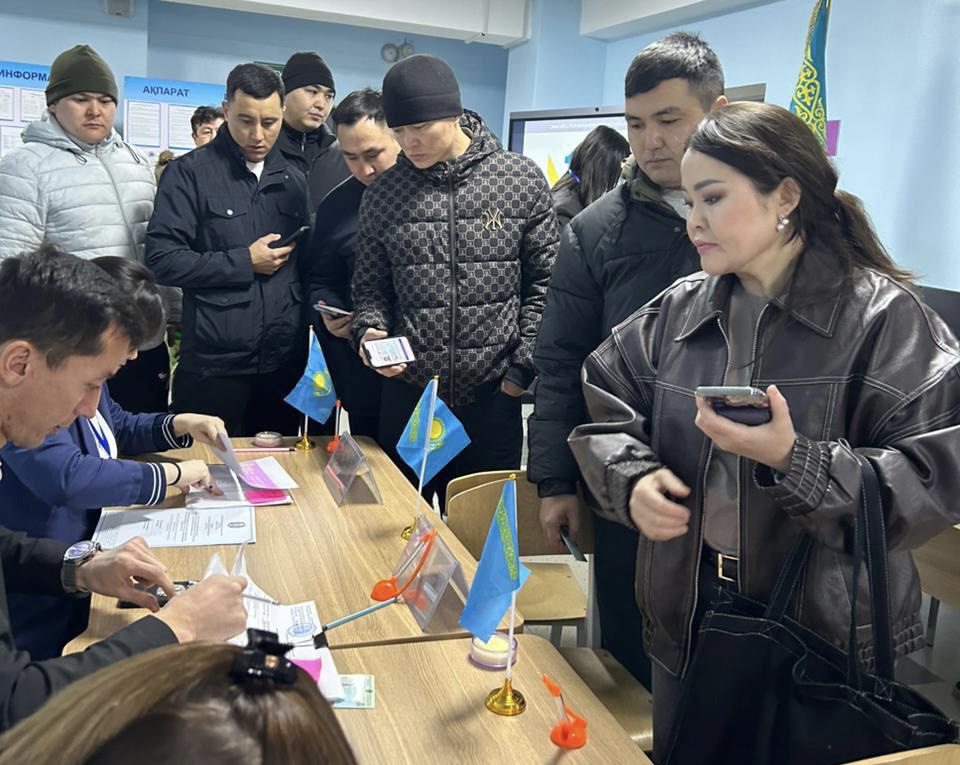Адамдардың көп болуына қарамастан, дауыс беру үдерісі тыныш және ұйымдасқан түрде өтуде.