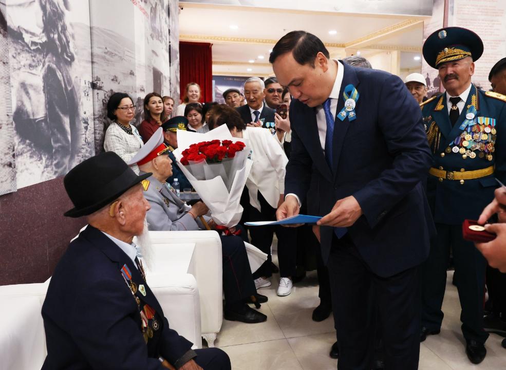 Жамбыл облысының әкімі Ербол Қарашөкеев Жеңіс мерекесіне орай Даңқ залында соғыс ардагерлерін құттықтады. Аймақ басшысы қарт майдангерлерге құрмет көрсетіп, Мемлекет басшысының арнайы Құттықтау хатын оқып берді. Иван Макеев 1927 жылы дүниеге келген. Мектепті бітіргеннен кейін Забайкалье майданында ерекше мақсаттағы радиодивизионның барлаушысы қызметін атқарды. Харбин, Мукден, Чань-Чюнь қалаларын азат ету шайқастарына қатысты. Ішкі істер саласында жауапты қызметтерді абыроймен атқарған. Отан соғысы орденімен, бірқатар мерекелік медальдарімен марапатталған. Григорий Нещеретнев 1921 жылы 22 қарашада Луговой ауданының Каменка аулында дүниеге келген. 1941 жылы әскерге алынып, майданда аға сержант, бөлімше командирі, батерея старшинасы болып шайқасқан. Ленинград қоршауын бұзуға, Новогород қаласын азат етуге қатысып, Псковқа дейін жеткен. Волхов майданында 501-ші миномет полкі құрамында шайқасқан. Ұрыста ауыр жараланып, емделгенен кейін әскер қатарынан босатылған. Соғыстан кейін 2-ші топтағы мүгедек екеніне қарамастан, көлік жүргізушісі болып еңбек еткен. Еңбек ардагері. Жауынгерлік және бейбіт кезеңде алған марапаттары бар.