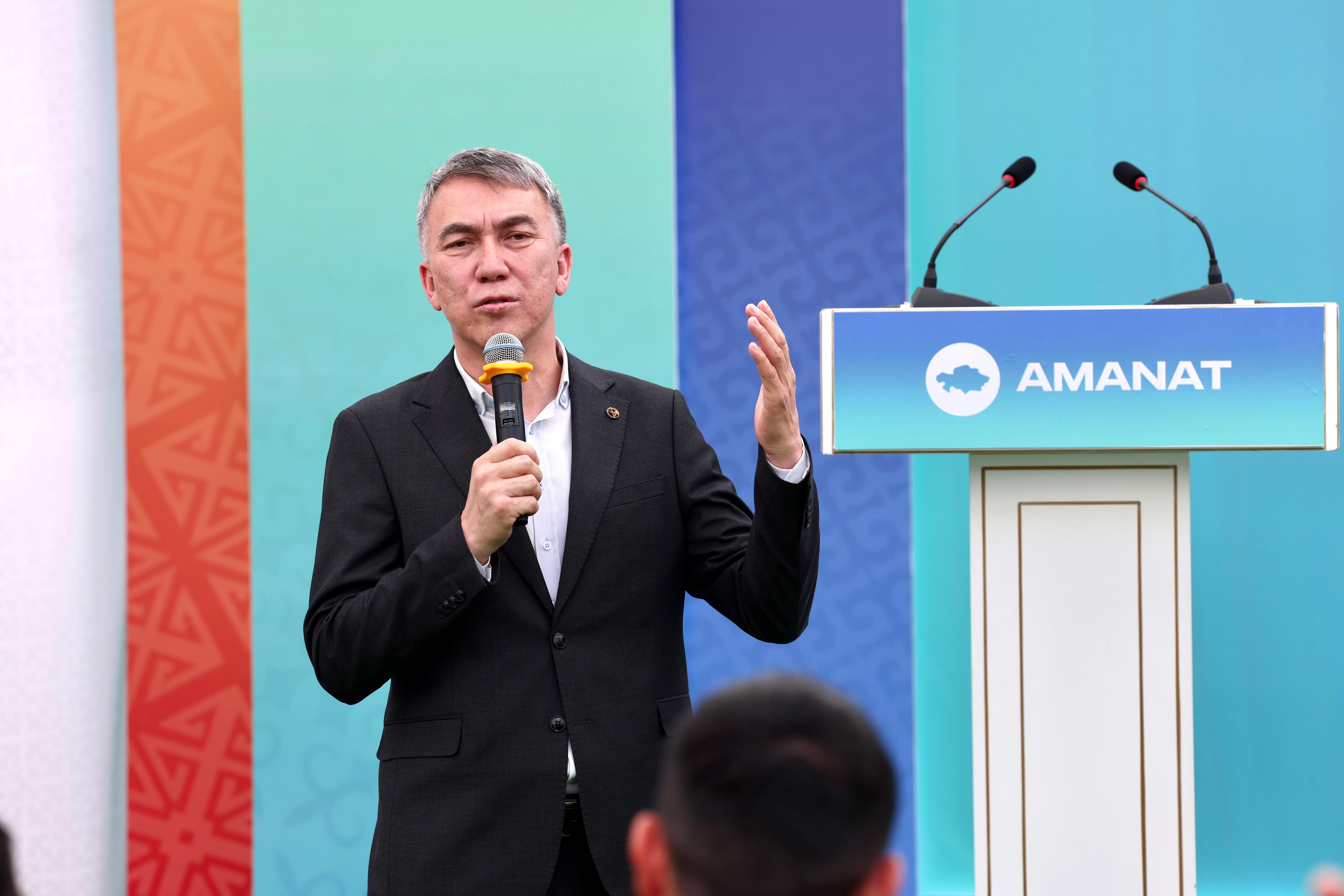 «Adal azamat qaşan da abyroily, adal eŋbek qaşan da baǧaly. Jūmysşy jastar bızdıŋ nazarymyzdan tys qalmauy kerek. Bız olardy ünemı qoldap, erekşe köŋıl böluımız qajet. Osy rette, «AMANAT» partiiasy Ükımetpen bırge «Jūmysşy jastar amanaty» degen jaŋa jobany bastaiyn dep otyr. Jobanyŋ maqsaty – jūmysşy jastardyŋ äleumettık mäselesın, sonyŋ ışınde tūrǧyn üimen qamtamasyz etu jäne kadrlyq äleuettı damytu mäselelerın şeşuge yqpal etu», – dedı ol.