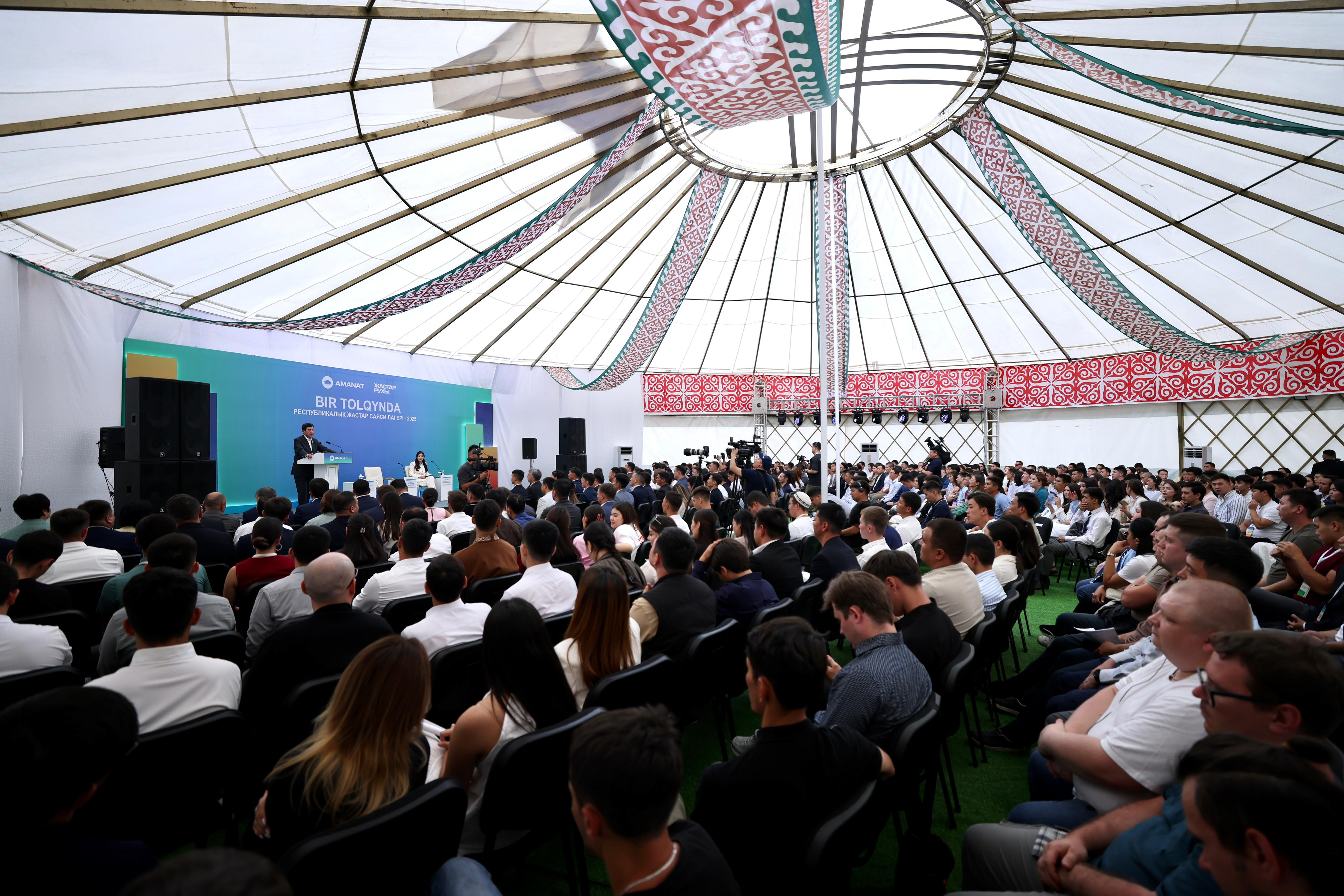 «AMANAT» partiiasynyŋ Töraǧasy Prezident Qasym-Jomart Toqaevtyŋ bastamasymen 2025 jyl Jūmysşy mamandyqtary jyly dep jariialanǧanyn eske saldy. Būl şeşım qoǧam igılıgı jolynda adal eŋbek etıp jürgen jandarǧa qoldau körsetuge baǧyttalǧan. Biyl jastar lagerınde 200-ge juyq jas azamat, iaǧni jūmysşy mamandyq ökılderı – injenerler, kenşıler, metallurgter, bır sözben aitqanda, ekonomikany kün saiyn öz eŋbegımen alǧa jeteleitınder bas qosty.