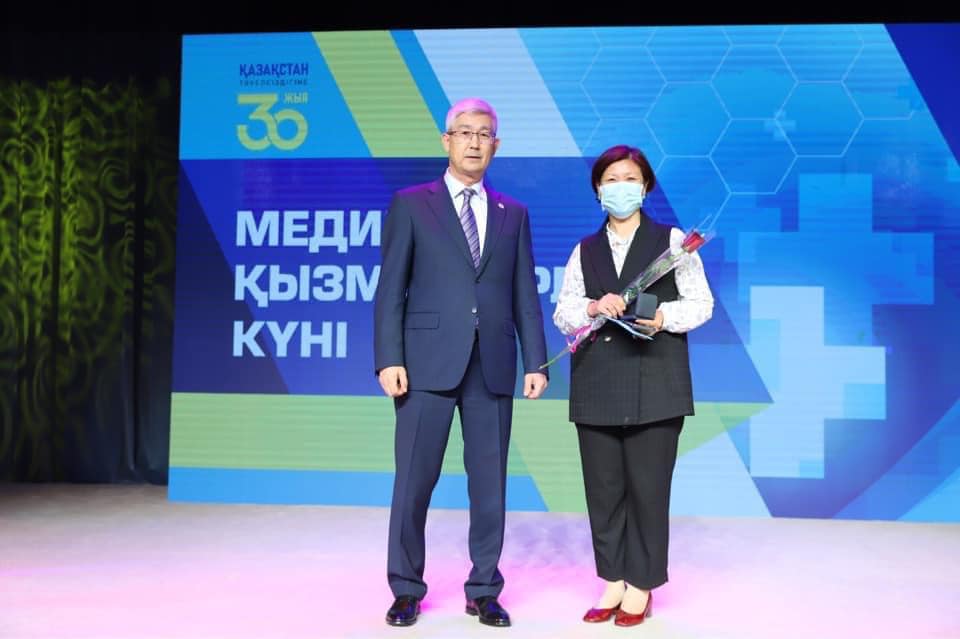 Sondai-aq, «Käsıbınıŋ üzdıgı» respublikalyq baiqauynyŋ jeŋımpazdary anyqtalyp, käsıbi şeberlıgı men janqiiarlyǧy üşın därıgerler, medbikeler, farmasevter jäne basqa da mamandar arnaiy marapatqa ie boldy.