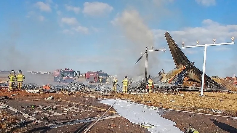 Jeju Air компаниясына тиесілі Boeing 737 ұшағы Бангкоктан ұшып, Сеулден оңтүстік-батысқа қарай 288 км қашықтықтағы Муандағы әуежайда қону кезінде апатқа ұшырады. Шасси ақауы себебінен ұшақ ұшып-қону жолынан шығып кетіп, қоршауға соғылып, өртенді.