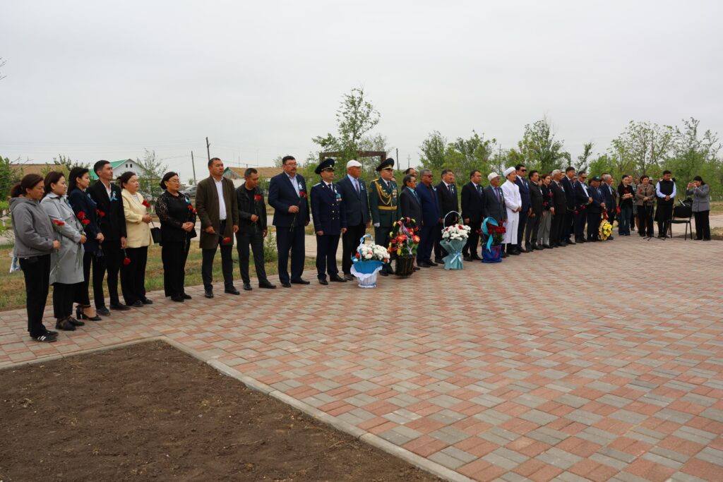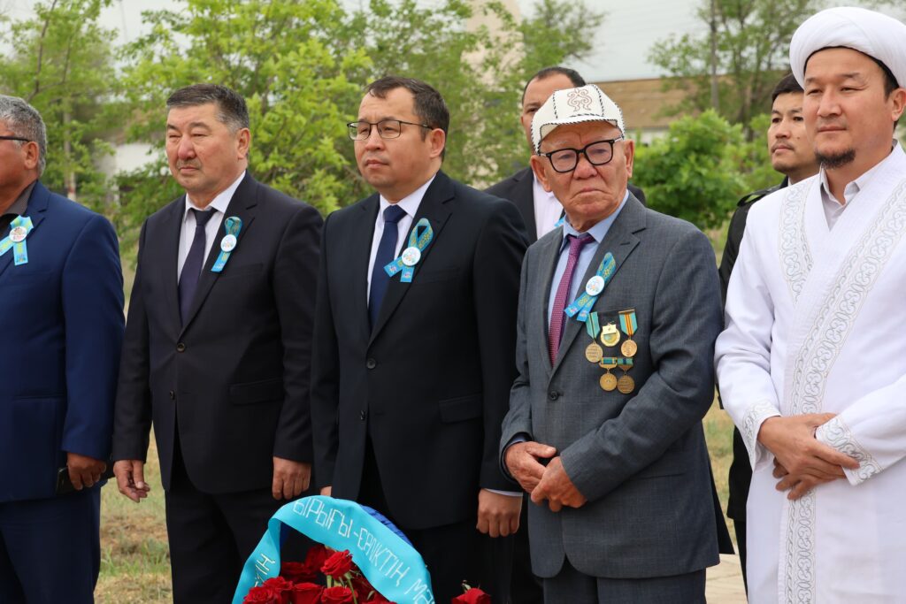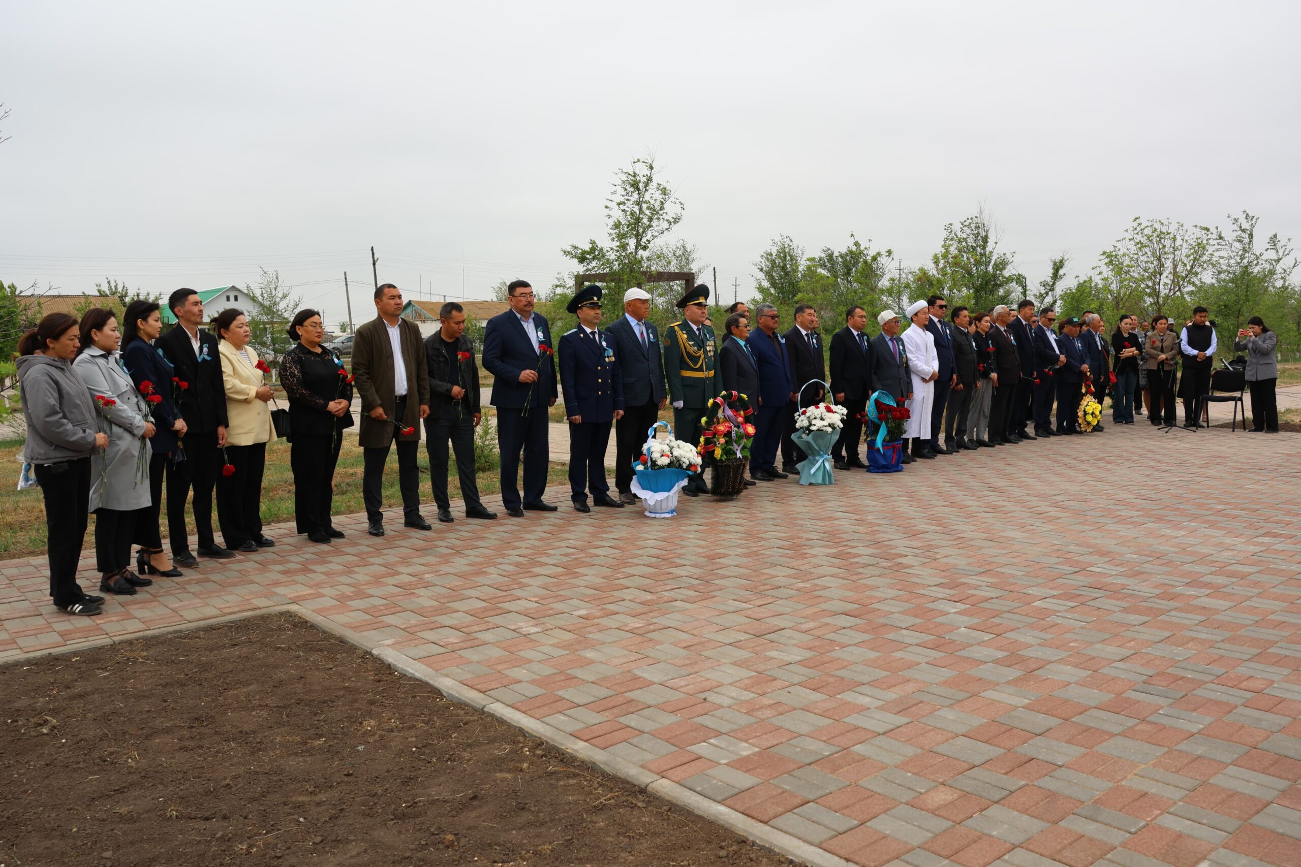 Мерекелік іс-шараға аудан әкімі Асланбек Сарқұлов, аудандық мәслихат төрағасы Сарсенбай Молдашев, ардагерлер, майдангерлер мен боздақтардың ұрпақтары қатысты. Асланбек Ахметоллаұлы аудан орталығындағы «Жеңіс» саябағында ескерткішке гүл шоқтарын қойып, батырлар рухына тағзым етті.