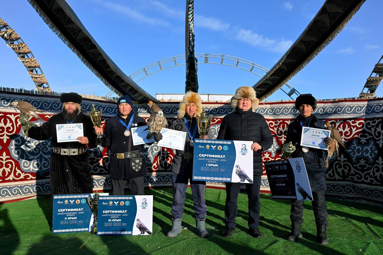 بۇركىتشىلەر سايىسىندا استانالىق ەراسىل سەرىكبەك «قاراشولاق» اتتى قۇسىمەن 1 ورىندى يەلەندى. قارشىعا باسەكەسىندە جامبىل وبلىسىنان كەلگەن بەرىكبولسىن باباجان جەڭىمپاز اتاندى. قۇستىڭ اتى – «قانجار». يتەلگى جارىسىندا باباجان باقداۋلەت «قاراكوز» اتتى قۇسىمەن جەڭىسكە جەتتى. «قۇماي تازى» دوداسىندا ءۇرجار اۋدانىنىڭ قاتىسۋشىسى راحات اقىلجانوۆ توپ جاردى.