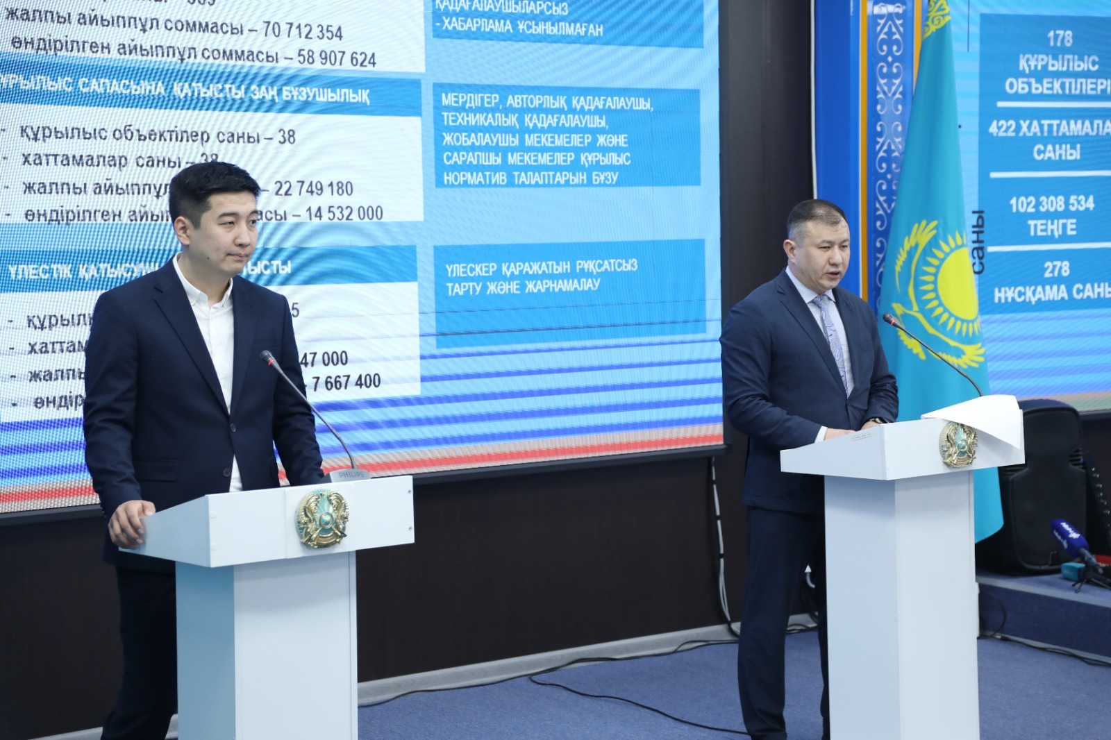 قۇرىلىس سالاسىنداعى قۇقىقبۇزۋشىلىقتاردىڭ الدىن الۋ ماقساتىندا 178 قۇرىلىس وبەكتىسى بويىنشا 422 اكىمشىلىك حاتتاما تولتىرىلدى. سالىنعان ايىپپۇلدىڭ جالپى سوماسى 102,3 ملن تەڭگەنى قۇراپ، ونىڭ 80,5 ملن تەڭگەسى ءوندىرىلدى. زاڭسىز قۇرىلىس فاكتىلەرى بويىنشا 125 نىسانعا قاتىستى 369 حاتتاما تولتىرىلىپ، 70,7 ملن تەڭگە كولەمىندە ايىپپۇل سالىندى. سونىمەن قاتار، قۇرىلىس ساپاسىنا، ۇلەستىك قاتىسۋ زاڭناماسىنىڭ تالاپتارىن بۇزۋعا جانە اۋداندار بويىنشا انىقتالعان قۇقىقبۇزۋشىلىقتارعا بايلانىستى ءتيىستى اكىمشىلىك شارالار قولدانىلدى.