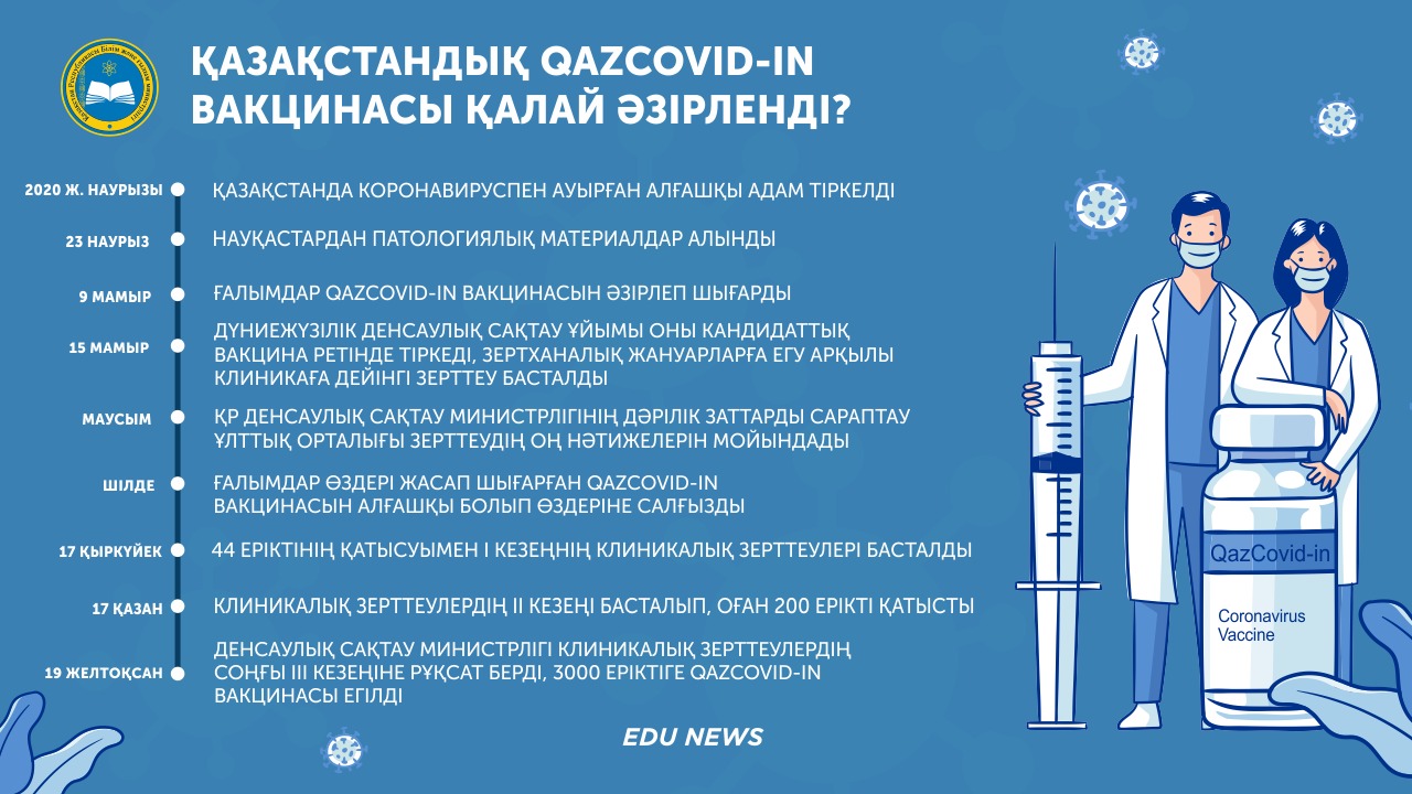 9 مامىردا عالىمدار QazVac (QazCovid-in) ۆاكتسيناسىن ازىرلەپ شىعاردى.