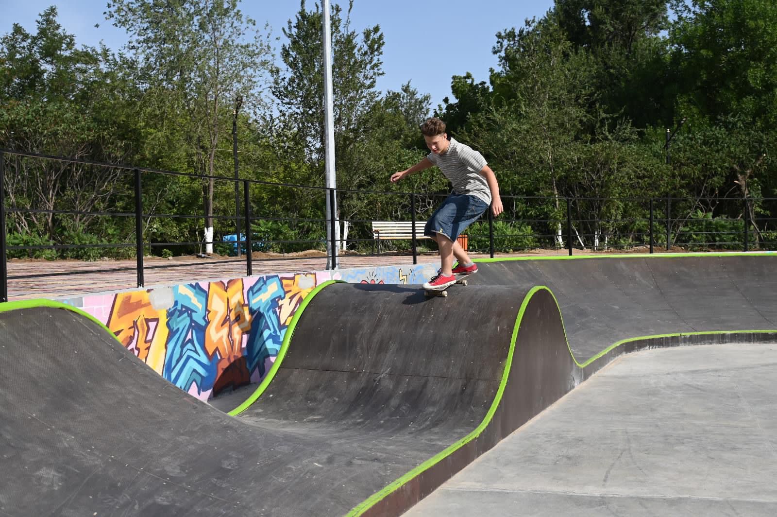 Жаңадан ашылған скейт-парктің аумағы 800 шаршы метрді құрайды. Онда бір мезгілде 40-қа жуық адам спортпен айналыса алады. Бұл жерде сейтбордингпен енді айналысып жүрген әуесқойларға арналған қарапайым фигуралар да, кәсіби скейтерлердің күрделі трюктар жасауына арналған фигуралар да орнатылған.