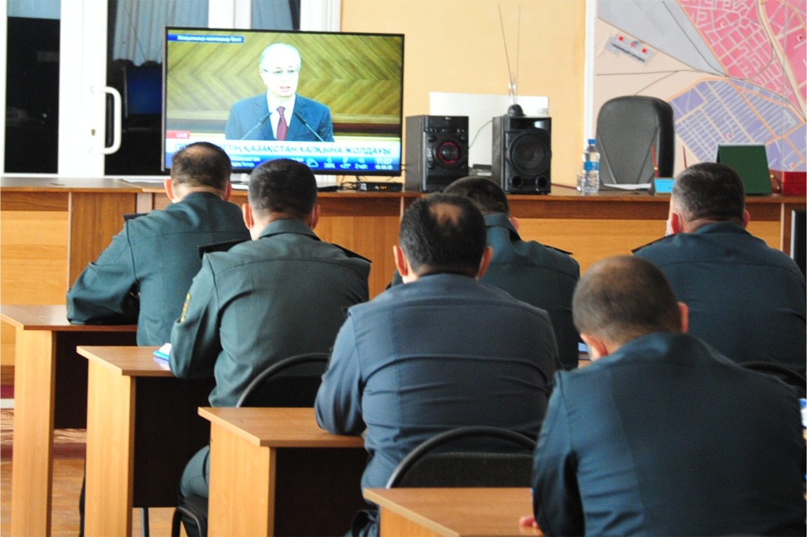 «Шығыс» өңірлік қолбасшылығы әскерлері қолбасшысының басқармасы мен бағынысты әскери бөлімдердің барлық жеке құрамында Мемлекет басшысының дәстүрлі жыл сайынғы Қазақстан халқына Жолдауын тікелей эфирде көрсету ұйымдастырылды. Қазақстан Президенті Қасым-Жомарт Тоқаев Парламент Палаталарының бірлескен отырысында «Жаңа жағдайдағы Қазақстан: іс-қимыл кезеңі» атты Жолдауын жариялап, елімізді одан әрі дамыту стратегиясымен таныстырды. Бұл жолдау әскери қызметшілердің ерекше ықыласы мен қызығушылығын тудырды, себебі Мемлекет басшысы пандемиямен күресте ерекше үлес қосқан әскерилерге, медицина қызметкерлеріне, кәсіпкерлерге, ерікті мен басқа дакөмек қолын созып, атсалысқан азаматтарға алғысын айтты. Қасым-Жомарт Тоқаев Жолдауда мемлекеттік басқарудың тиімділігін арттыру, жаңа заман талаптарына сәйкес экономикалық даму, өнеркәсіп әлеуетін еүшейту, ауылшаруашылығы саласын, көлік-логистика кешенін, шағын және орта бизнесті, қаржы секторын, өңірлік даму және қазақстандықтардың әлеуметтік жағдайын арттыру секілді бірқатар бастама көтерді. Осы орайда «Ел қауіпсіздігін қамтамасыз етуде біз мемлекет басшысы Қ.К.Тоқаевтың алдымызға қойған міндеттерін үнемі басты назарда ұстанамыз. Біздің қызметіміз ең алдымен ұдайы жоғары жауынгерлік әзірліктіұстану және осылайша еліміздің қауіпсіздігін қамтамасыз ету басты міндетіміз», - деді «Шығыс» өңірлік қолбасшылығы әскерлерінің қолбасшысы генерал-майор Асан Жусупов.