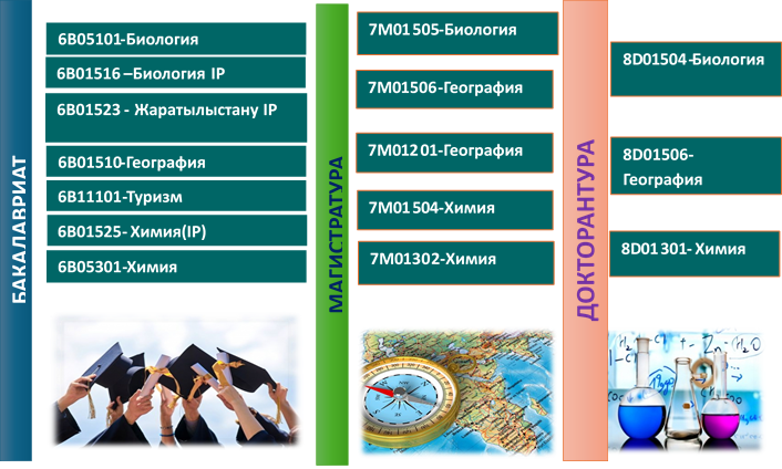 Биология кафедрасы төмендегідей білім беру бағдарламалары бойынша мамандар даярлауды жүзеге асырады: