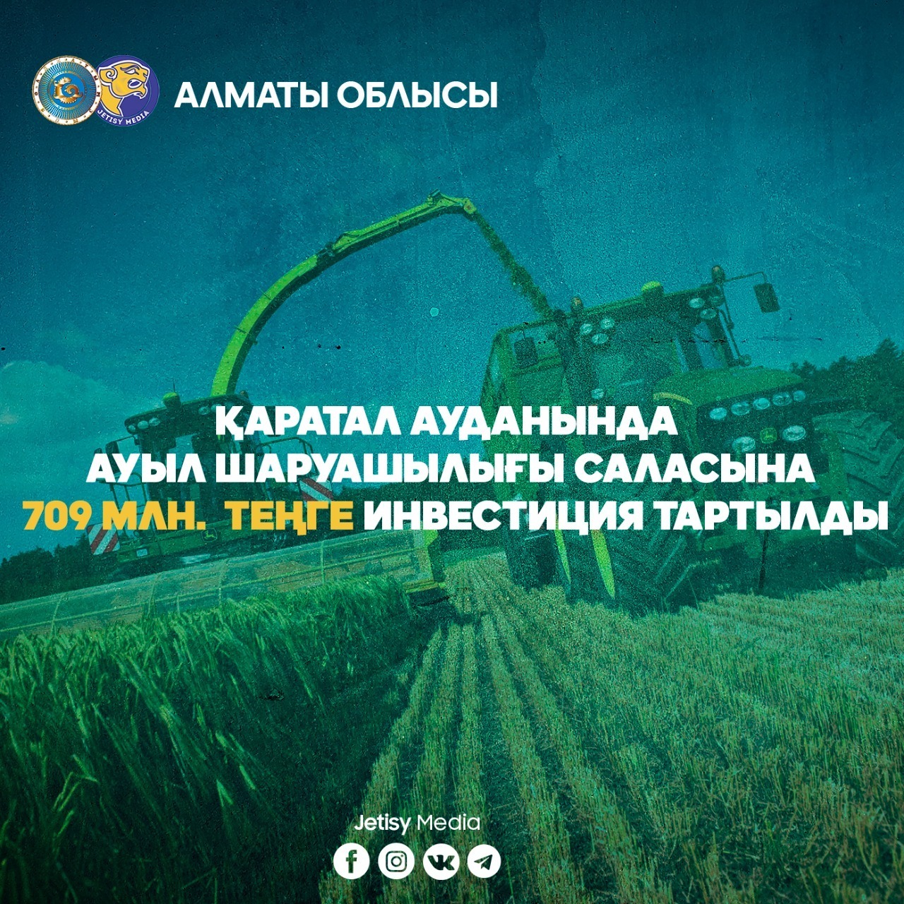 Қаратал ауданында ауыл шаруашылығы саласы бойынша 7 айлық көрсеткіш ауыз толтырарлық. Осы уақытқа дейінгі түскен пайда 10 млрд. 581,5 млн. теңгені құрайды. Жалпы көлем индексі-102,6%. Ал, ауданында ауыл шаруашылығы саласына тартылған инвестиция көлемі 709 млн. 170 мың теңгеге жетіп жығылады. Бұл туралы Қаратал ауданында өткен көшпелі баспасөз-мәслихатында мәлім болды.
