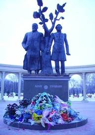 2008 jyly Qaraǧandy qalasynda 9,9 metrlık qola jäne granitten jasalǧan eŋselı eskertkış aşyldy. Müsınşı – A.Nartov, säuletşı – E.Şahiev. Būl eskertkış Qazaqstan Suretşıler odaǧynyŋ Qaraǧandy oblystyq bölımınıŋ körkem-öndırıs kombinatynda qūiylǧan.