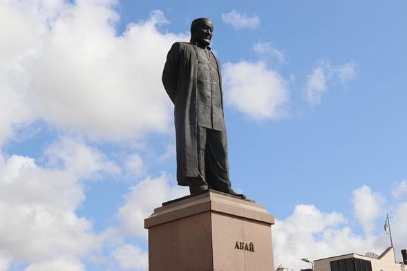 Täuelsızdık alǧannan keiıngı jyldardaǧy alǧaşqy eskertkışterdıŋ bırı – 2002 jyly 27 tamyzda Oral qalasynda aşyldy. Müsınşı Nūrlan Dalbai jasaǧan tuyndy granitten qaşalǧan, Abaidyŋ sabyrly, baisaldy bolmysyn beineleidı.