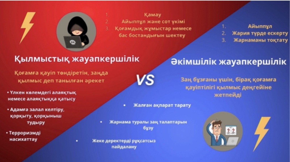 «Qazaqstandaǧy onlain platformalarda aqparat taratu – tek erkındık emes, naqty zaŋdyq mındet. Bloger jalǧan aqparat taratsa, jarnamany jasyrsa nemese auditoriiany adastyrsa, ol äkımşılık ne qylmystyq jauapkerşılıkke tartylady. Būl mehanizmder blogerdıŋ auditoriia aldyndaǧy jauapkerşılıgın qamtamasyz etuge baǧyttalǧan», - deidı zaŋger.