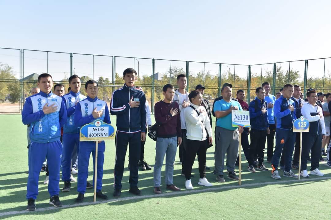 Şymkent qalasynyŋ Qaratau audanynda mektep mūǧalımderı arasynda futboldan saiys bastaldy.