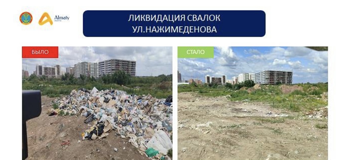 K primeru, po raionu Almaty likvidirovano 61 uchastokov i vyvezeno 23,5 tys tonn musora (3357 reisov).
