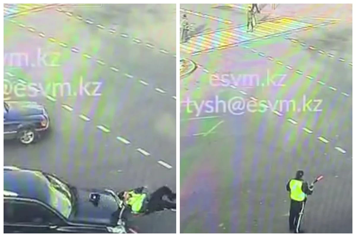 Almatyda jol talǧamaityn kölık polisiia qyzmetkerın qaǧyp kettı...