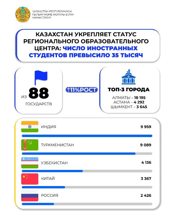 Казахстан укрепляет статус регионального образовательного центра: число иностранных студентов превысило 35 тысяч
