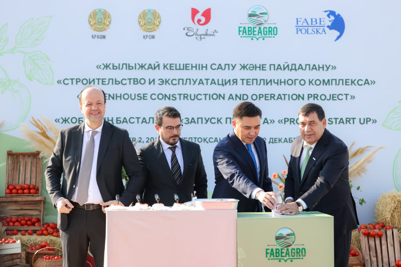 В городе Шымкент официально стартовало строительство очередного крупного тепличного комплекса. Сегодня аким города Габит Сыздыкбеков совместно с руководством польской компании Fabe-Agro принял участие в церемонии закладки капсулы, посвящённой началу реализации проекта стоимостью 137 миллионов долларов США.