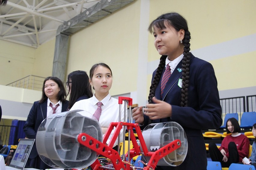10-сынып оқушысы Алика Ақылбекова мен 9-сынып оқушысы Диана Хасимова «Жер және ғарыш туралы ғылым» бөлімінде «Илон Маск» жобасын таныстырды. Жас өнертапқыштар ғарышта балама отын көзі ретінде сутегін алуға қабілетті робот жасап шығарды.