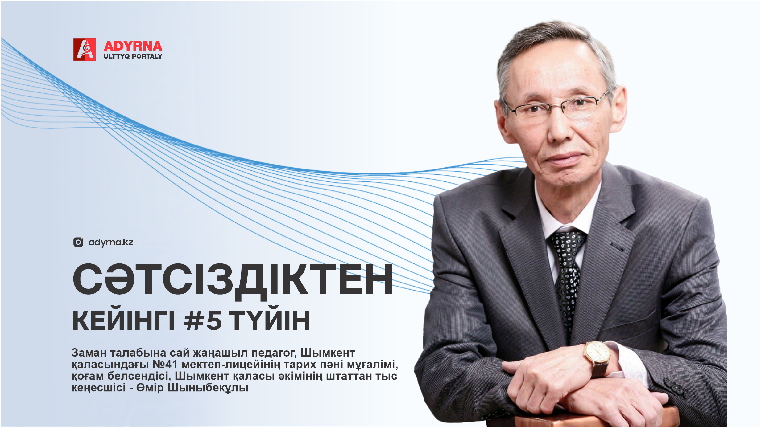 ءار ادام ومىرىندە ءتۇرلى ساتسىزدىكتەرگە كەزدەسەتەنى قالىپتى جاعداي. الايدا ساتسىزدىكتى جاۋ ەمەس، ۇستاز دەپ قابىلداعان ءجون. ءار ساتسىزدىك - ساتتىلىكتىڭ باستاۋى. ءار ساتسىزدىك - تابىسقا باستار جول. ءبىلىم بەرۋ سالاسىنىڭ دامۋىنا كەلەلى ۇلەس قوسىپ جۇرگەن ۇلاعاتتى ۇستاز ءومىر شىنىبەكۇلىنىڭ ەسىمى قالىڭ كوپشىلىك......