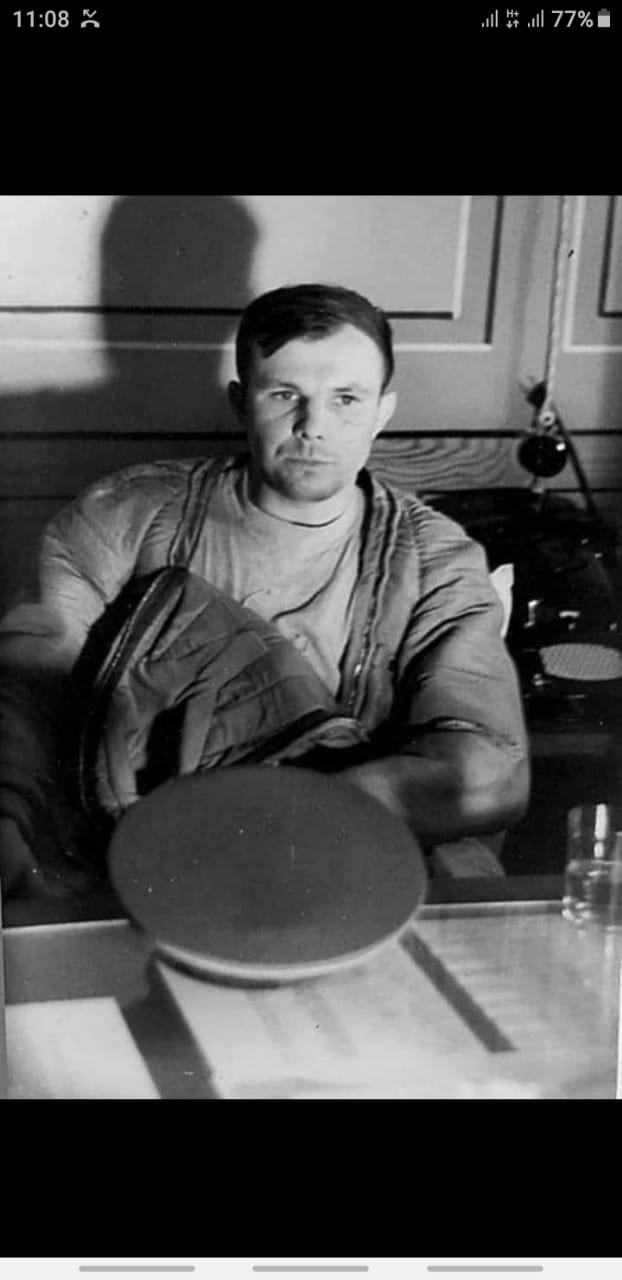 تومەندە گاگاريننىڭ عارىشتان ورالعاننان كەيىن بىرنەشە ساعاتتان سوڭ تۇسكەن فوتوسى. بۇل جەردە اتاقتى ، "گاگاريندىك جىميۋ" جوق. قانداي شىرعالاڭنان ءوتىپ، قانداي عاجايىپتاردىڭ ارقاسىندا ءتىرى قالعانىن تۇسىنگەن ادامنىڭ بەينەسى بار. شتاتتان تىس وقيعالار ۇشپاي تۇرىپاق باستالعان بولاتىن. اۋەلى سالماق ولشەۋ كەز......
