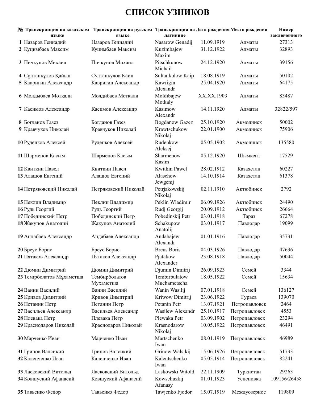 اتالعان تاقتادا العاش رەت QR-كود قولدانىلىپ، كەلۋشىلەرگە قازاقستاندىق تۇتقىنداردىڭ ءتىزىمىن قازاق، ورىس جانە نەمىس تىلدەرىندە كورۋگە مۇمكىندىك بەرىلدى. تىزىمگە الماتى، اقتوبە، تاراز، شىمكەنت، پاۆلودار، پەتروپاۆل، سەمەي قالالارى مەن اقمولا جانە تۇركىستان وبلىستارىنان شىققان ءتۇرلى ۇلت وكىلدەرى – بارلىعى 35 قازاقستاندىق ەنگىزىلگەن. ەڭ جاس تۇتقىن 1926 جىلى، ال ەڭ ۇلكەنى 1900 جىلى دۇنيەگە كەلگەن. ءتىزىمدى تولىقتىرۋ جۇمىستارى بۋحەنۆالد مەموريالدى كەشەنىنىڭ قولداۋىمەن جالعاسا بەرمەك.