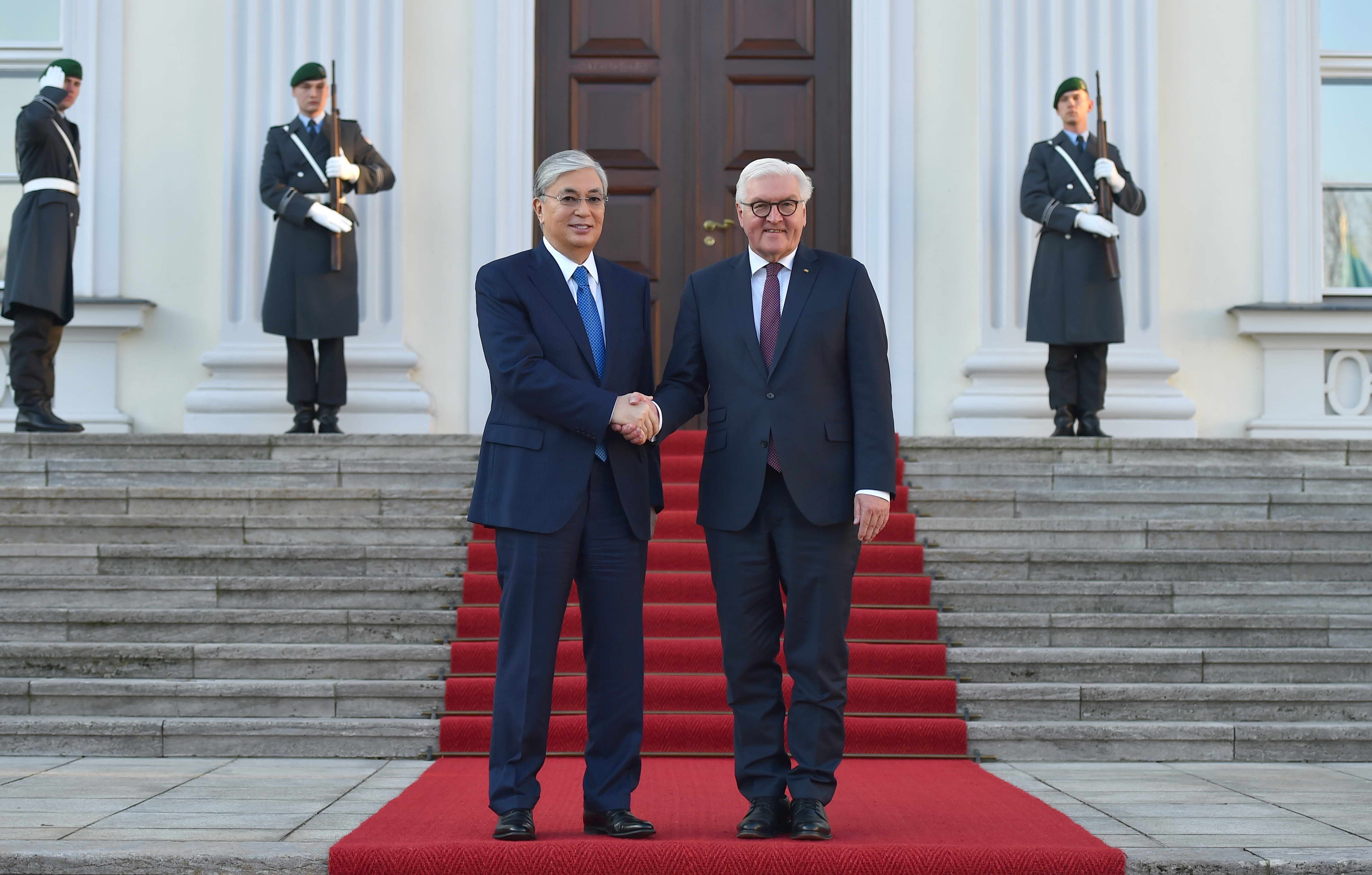 الدىمەن اقوردا، كەيىن ماڭعىستاۋ. قازاقستاننىڭ باتىس وڭىرىنە ات باسىن بۇرۋدى ماقسات ەتكەن گەرمانيا پرەزيدەنتى استاناعا كەلدى. مەملەكەت باسشىسى قاسىم-جومارت توقاەۆ ەلىمىزگە مەملەكەتتىك ساپارمەن كەلگەن گەرمانيانىڭ فەدەرالدى پرەزيدەنتى فرانك-ۆالتەر شتاينمايەردى اقوردادا سالتاناتتى تۇردە قارسى الدى، دەپ حابارلايدى "ادىرنا" ۇلتتىق پورتالى.