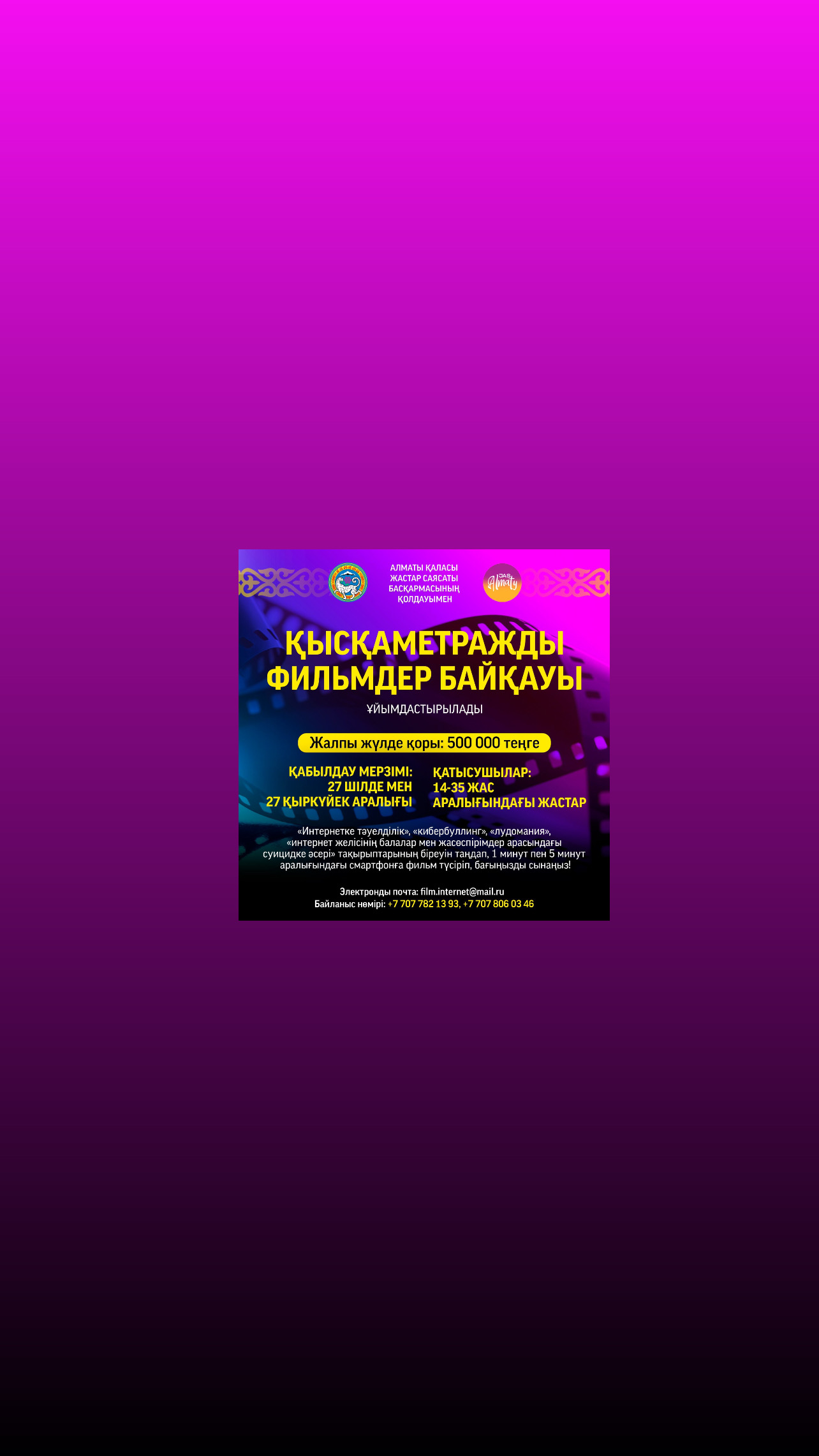 «ينتەرنەت جەلىسىنىڭ بالالار مەن جاسوسپىرىمدەر اراسىنداعى سۋيتسيدكە اسەرى» تاقىرىپتارىنىڭ بىرەۋىن تاڭداپ، 1 مينۋت پەن 5 مينۋت ارالىعىنداعى فيلم ءتۇسىرىپ، باعىڭىزدى سىناڭىز!