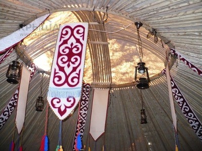 كوشiپ-قونعاندا ۋىقتاردى جيناستىرىپ، «جەلباۋ» دەگەن اتاۋى بار ارنايى جiپپەن ەكi باسىنا تاياۋ جەردەن مىقتاپ بايلايدى دا، كولiك جانۋارىنىڭ ەكi جاعىنا تەڭدەپ ارتاتىن بولعان. ءۇيدi تiككەن كەزدە، جەلباۋدىڭ ەكi جاق باسىن بiرiكتiرiپ قايىرادى دا، تۇيىقتالعان باسىنىڭ اراسىنان ەكi ۇشىن وتكiزiپ، شىرماۋىنان ۋىق كiرگiزiپ بايلاپ، شاڭىراقتان 1 مەتردەي تومەندەۋ تۇستان شاندىپ قويادى. بiر كيiز ۇيدە بۇنداي جەلباۋ دۇنيەنiڭ ءتورت بۇرىشى بويىنشا ءتورت ۋىققا بايلانادى. ۋىققا بايلانىپ، سالبىراپ تۇرعان جەلباۋ تومەنگi جاعى ءتۇزۋ كەلگەن توعىز سانىنا نەمەسە سۇراق بەلگiسiنە (؟) ۇقسايدى. ءتورت تۇستاعى جەلباۋدىڭ ەكەۋi كوز مولشەرiمەن شىعىس پەن باتىستى جالعاپ جاتقان ەندiك ءتۇزۋiنiڭ ۇزىنا بويىنداعى ەكi ۋىققا بايلانىپ، شاڭىراققا شانشىلادى. قالعان ەكi ۋىق «قۇس جولىن» نەمەسە بويلىقتىڭ ۇزىنا بويىن مەجەلەگەن ءتۇزۋدiڭ بويىمەن شەڭبەر iشiندە بiر-بiرiنە قارسى باعىتتا شاڭىراققا قادالادى. جەلباۋدىڭ ەكi ۇشى جىلقىنىڭ قۇيرىق-جالىنان جاسالعان شاشاقتارمەن اشەكەيلەنەدi.