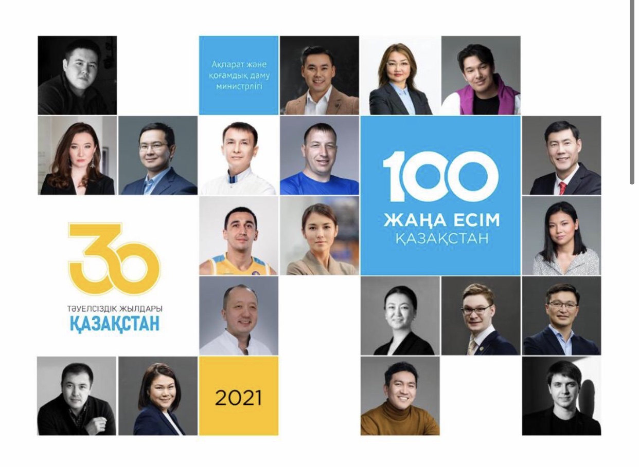 «قازاقستاننىڭ 100 جاڭا ەسىمى» جوباسى – تاۋەلسىزدىك جىلدارىندا تابىسقا جەتكەن، ەلىمىزدىڭ ءار وڭىرىندە تۇراتىن ءتۇرلى جاستاعى، سان الۋان ەتنوس وكىلدەرىنىڭ تاريحى. جوبا 2017 جىلى ەلباسى ن. نازارباەۆتىڭ باستاماسىمەن جارىق كورىپ، بيىل دا جالعاسىن تاپتى.