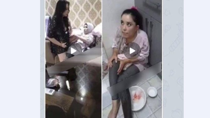 جەلىدەگى ۆيدەودا قىزدى قاراپ وتىرعان ايەلدىڭ اياعىن سۇيۋگە ماجبۇرلەگەنى كورىنەدى.
