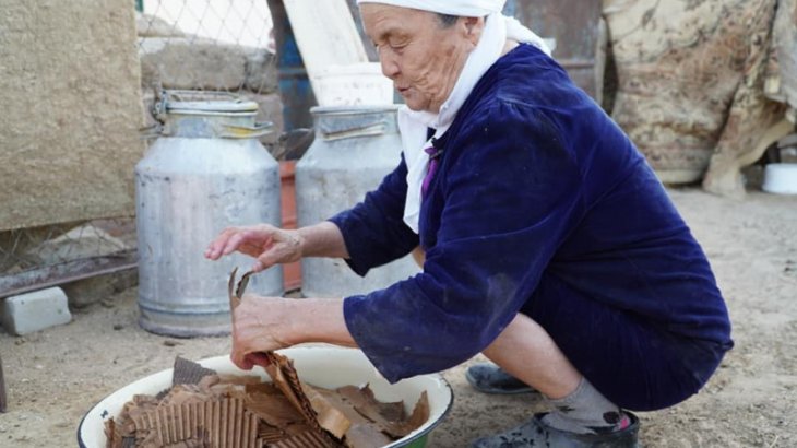 قۋاڭشىلىققا بايلانىستى قىمباتتاپ كەتكەن ءشوپتى ۇنەمدەۋ ءۇشىن شارۋالار كارتوندى سۋعا ەزىپ، سوسىن ەرىگەن كارتوندى كەبەكپەن جانە قالدىقتارمەن ارالاستىرىپ بەرەدى.