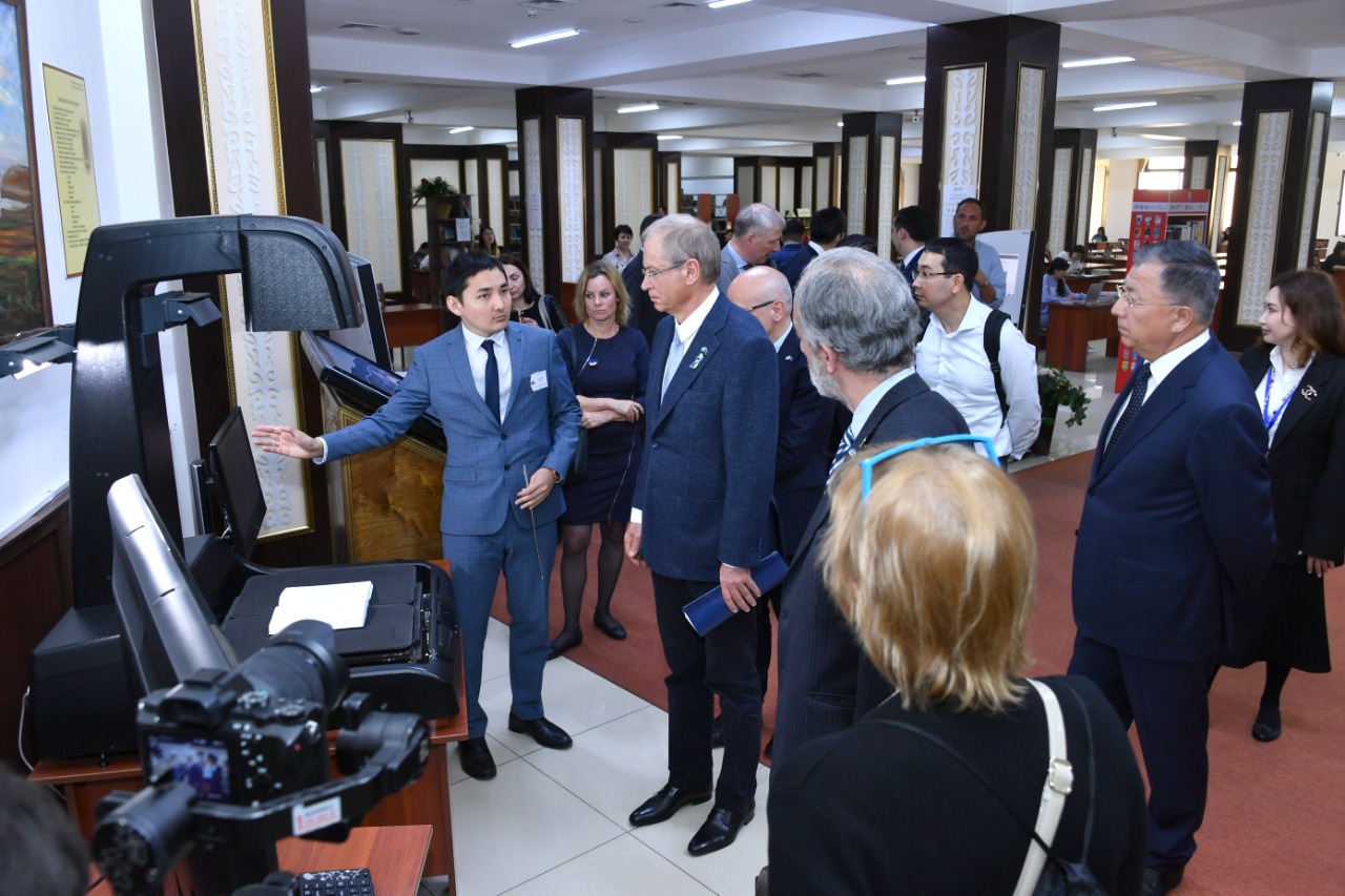 Еуропарламент өкілдері алдымен «Әл-Фараби» музейін аралап, қара шаңырақ тарихына қанықты. Сонымен қатар қонақтарға ҚазҰУ жанындағы Пан Ги Мун институтының қызметі баяндалып, оқу орнының даму жоспары таныстырылды.