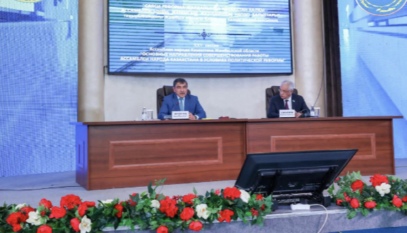 Жамбыл облысының әкімі Нұржан Нұржігітов «Саяси реформа жағдайында Қазақстан Халқы Ассамблеясының жұмысын жетілдірудің негізгі бағыттары» тақырыбында өткен Жамбыл облыстық Қазақстан халқы Ассамблеясының XXV сессиясының пленарлық отырысына қатысты.