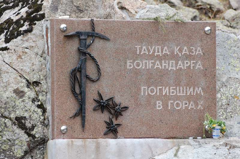 Қаза тапқан альпинистерге арнап қойылған Алатау биігіндегі ескеркіш тақта / Сурет club.outdoorcenter.kz сайтынан алынды