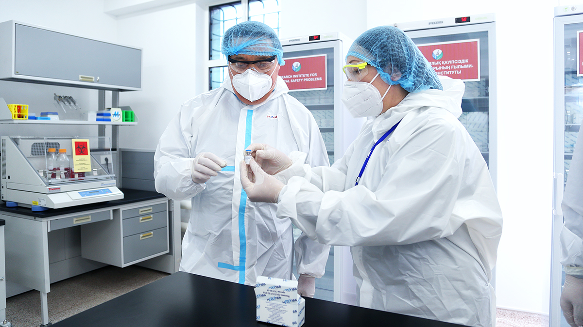 ҚР Премьер-Министрі Асқар Мамин Жамбыл облысы Қордай ауданының Гвардейский кентіндегі ҚР БҒМ Биологиялық қауіпсіздік проблемалары ғылыми-зерттеу институтына (ҒЗИ) барды. Бүгінгі таңда ҒЗИ отандық QazCovid-in вакцинасын клиникалық сынаудың I және II фазаларын жүргізді. Зерттеудің алдын ала нәтижелері вакцинаның жоғары қауіпсіздігін, иммуногенділігін және тиімділігін 96% деңгейінде көрсетті.