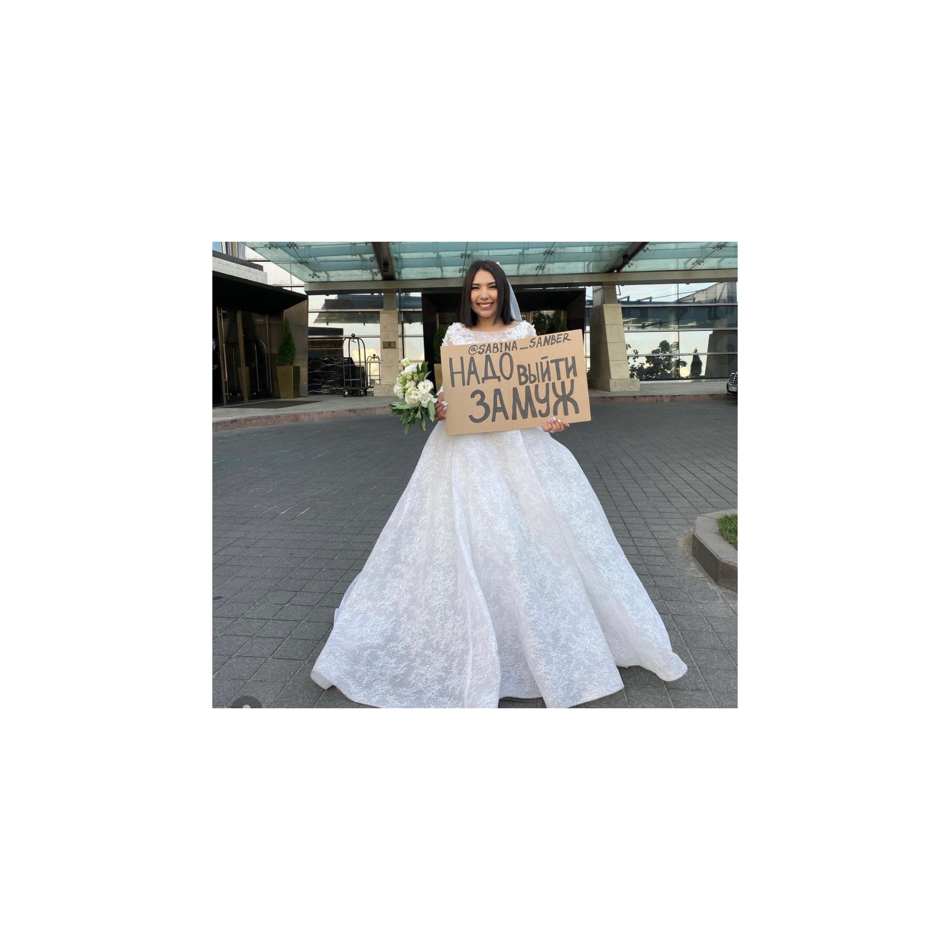 «Тұрмыс құру маңызды дейді... Не үшін маңызды? Шынымды айтсам, қазір бұл көпшілік үшін мәселе болып есептеледі. Адамдар некеге отыру қажет болғандықтан ғана шаңырақ көтереді. Қыз 25 жастан асып, әлі тұрмыс құрмаса, қоғам оны «кәрі қыз» деп атап, қысым жасайды. Бұл маған ұнамайды. Менің жасымды естіген кез келген адам әлі тұрмысқа шықпағаныма таң қалады. Одан кейін «уақыты келді» деген әңгімелер басталады. Бұл сурет арқылы әлеуметтік стандарттарды мазақ еткім келеді, өйткені үйленудің нақты белгіленген уақыты жоқ. Сіз дайын болған кезде және жақын адамыңызды жолықтарған жағдайда ғана неке қидыртуыңыз қажет»,—деді ару.Сабинаның айтуынша, ол 26 жаста, өзінің жеке компаниясы бар және мінезі де жаман емес.