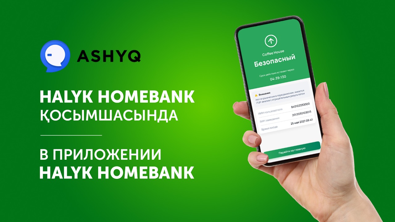 "Ashyq" сервисі енді Halyk Homebank қосымшасына енгізілді. Бұл танымал қосымшаны қолданатын 6,5 миллионнан астам ел азаматы денсаулығына қауіп төндірмей, қоғамдық орындарға бару мүмкіндігін алды деген сөз .