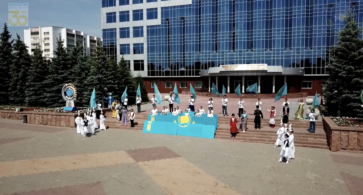 «Этномәдени бірлестіктер мен еріктілер қозғалысы орталығының белсенділері облыс әкімдігі алдындағы алаңда Мемлекеттік рәміздер күніне орай Қазақстан Республикасының туын көтеру үшін жиналды. Флэшмоб қазақ халқының ұлттық биінен басталды, оны «Зарянка» хореографиялық ұжымы Құрманғазының әуенімен орындады. Қорытынды бөлімде «Индиго» ұжымының бишілері ПВХ пазлдарынан Қазақстан туын құрастырды. Жалауша ұстаған ҚХА еріктілері мен этномәдени бірлестіктердің өкілдері ұлттық киімдерімен шығып, орталық алаңды мерекеге ұластырды», - дейді флэшмоб қатысушысы Дарья Щербакова.