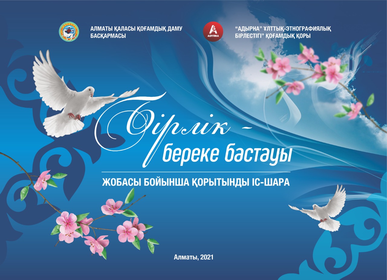 Алматы қаласы Қоғамдық даму басқармасының тапсырысымен «Адырна» ұлттық-этнографиялық бірлестігінің ұйымдастырып жатқан “Бірлік - береке бастауы” жобасы да елді бірлікке шақырады. Жоба аясында өзге этнос өкілдерін қолдап, олардың қазақ тілін меңгеруіне жағдай жасалды, түрлі жарыстар өткізілді. «Жаңғыру жолы» өңірлік штабының мүшесі Чепель Владимирмен кездесу өтіп, мемлекеттік тілдің маңыздылығы талқыланды. Жастар толеранттылық ұғымымен таныс болып, Қазақстан халқы Ассамблеясы өкілдерімен таныс болды.