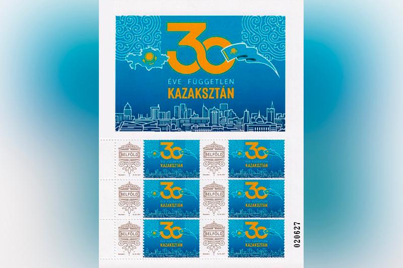 Мажарстанның пошта маркасында Қазақстан тәуелсіздігінің 30 жылдығының логотипі бейнеленген.